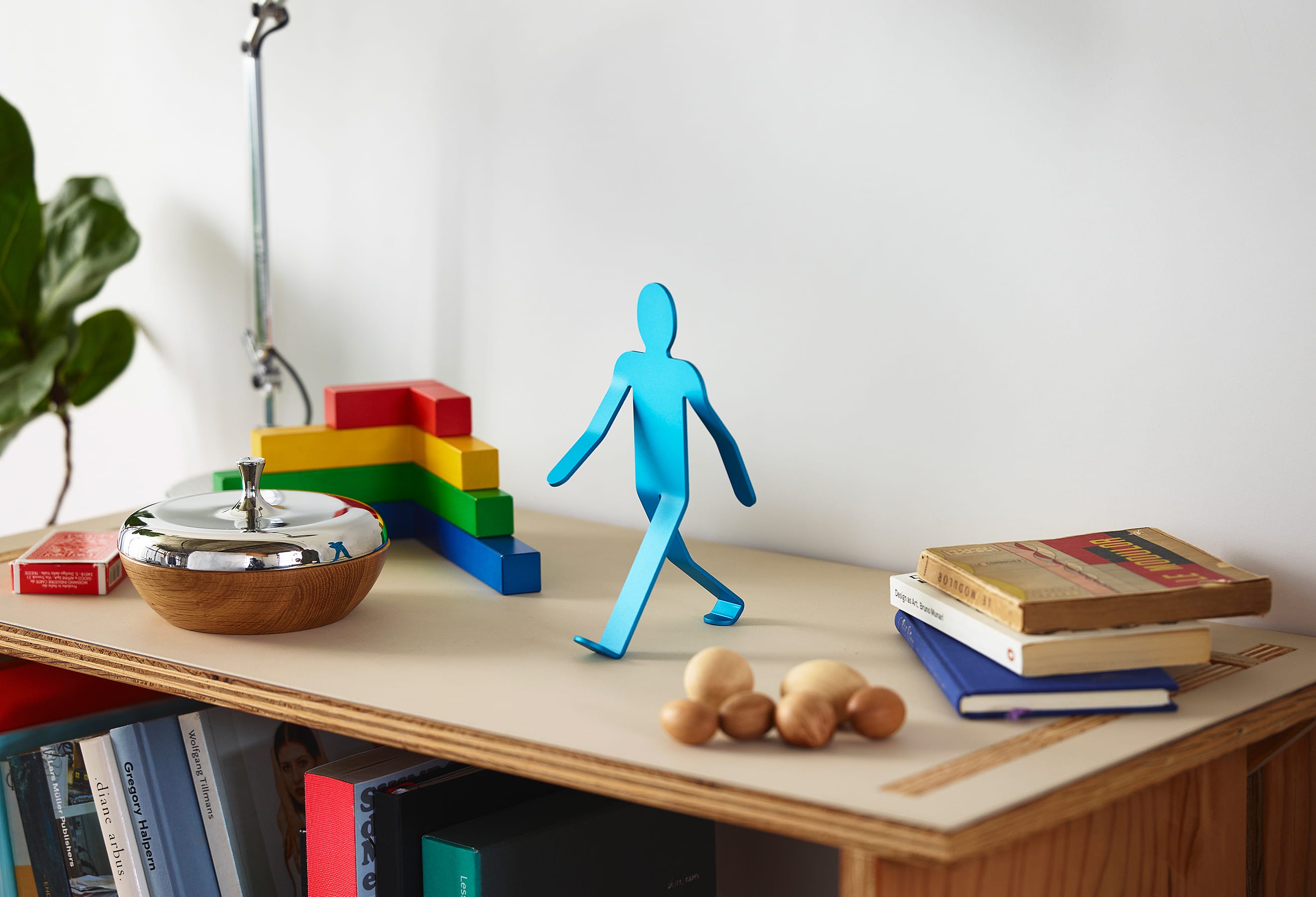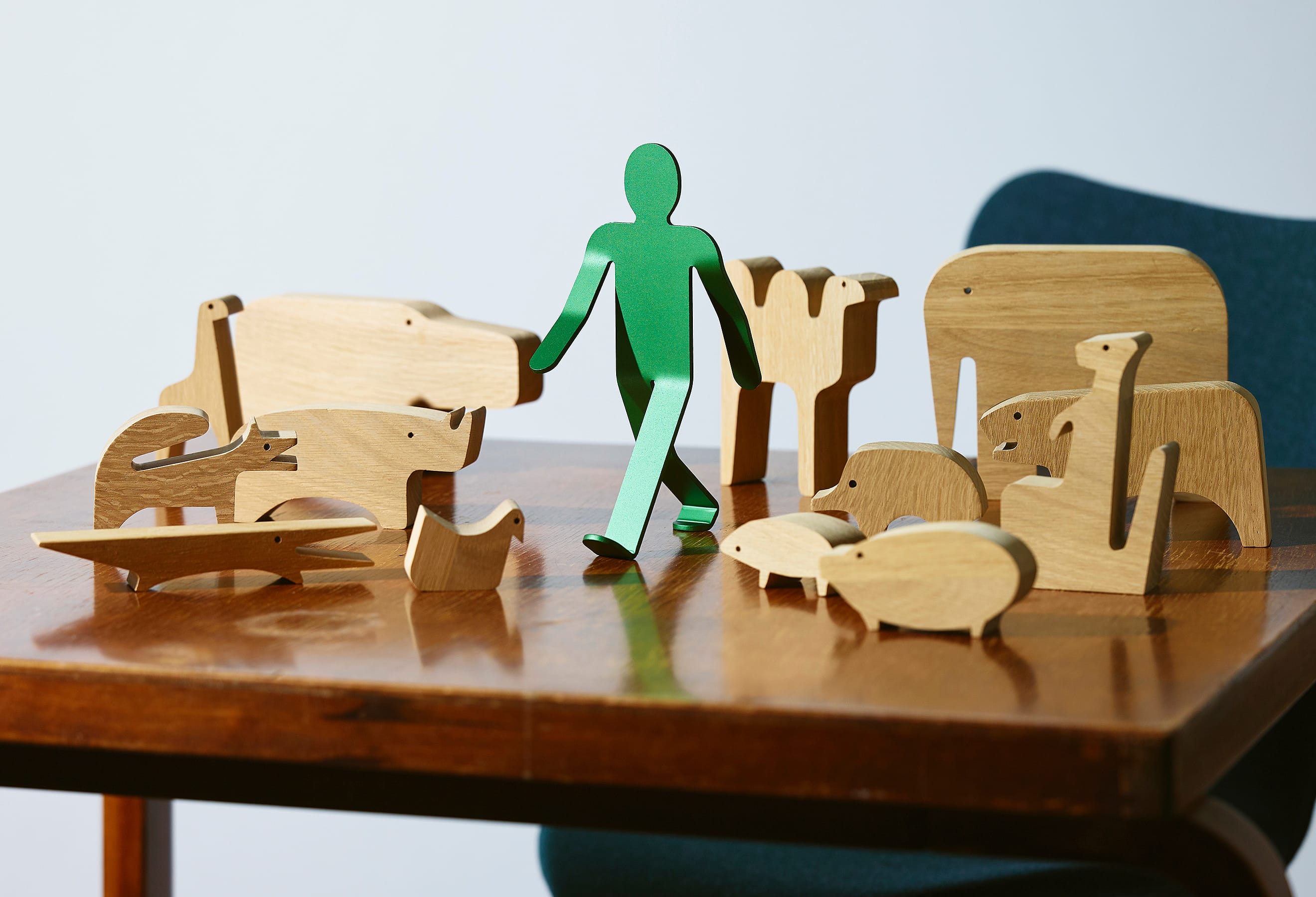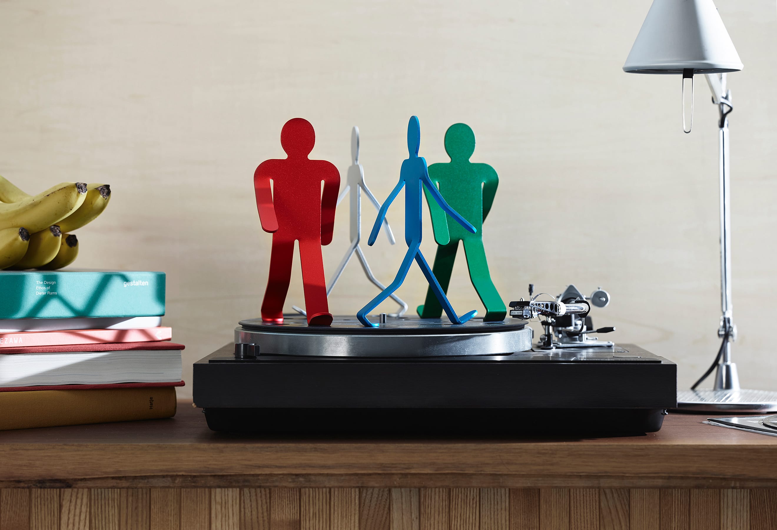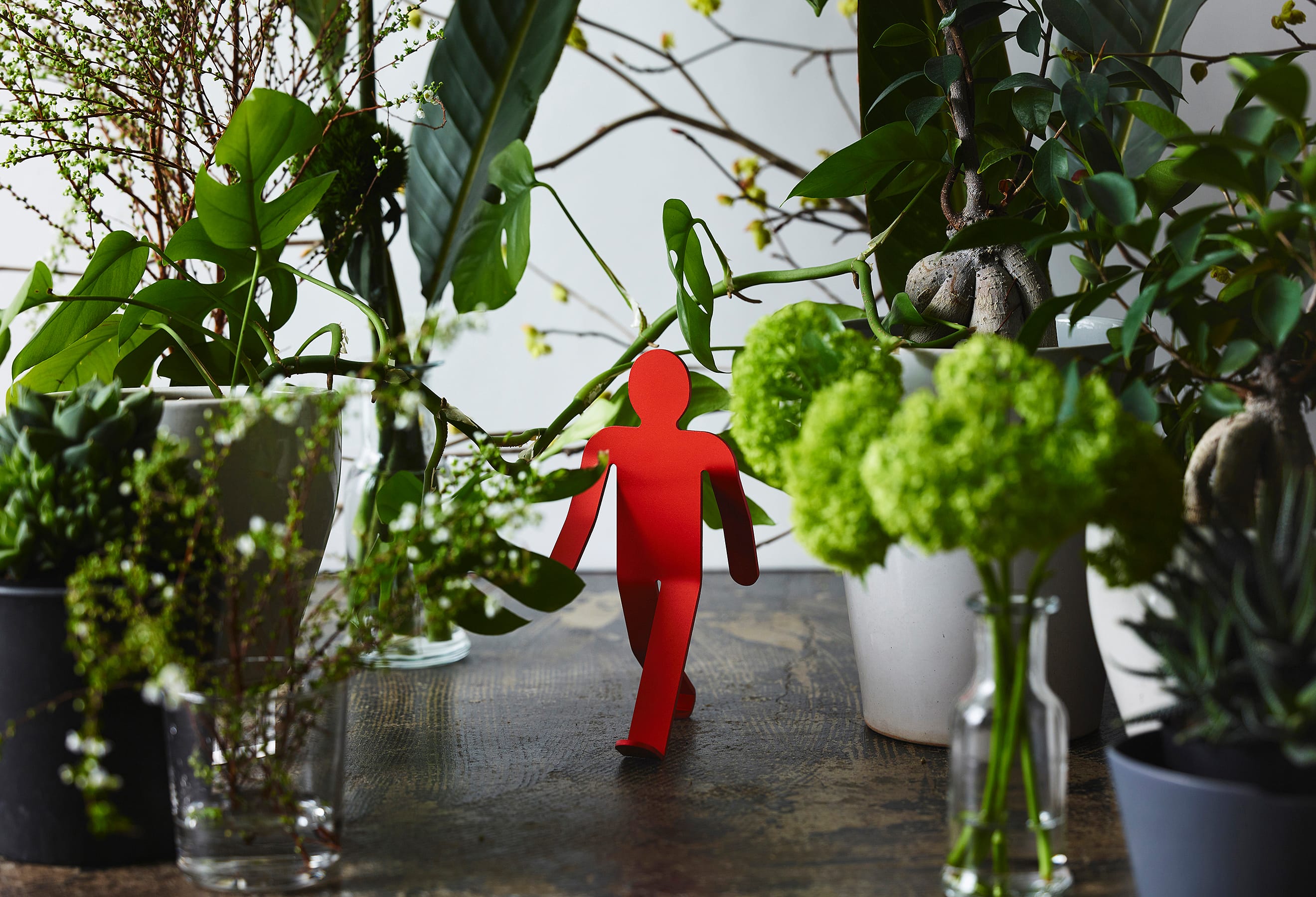 3mm厚のアルミニウム板を複雑に曲げ、2本足の繊細なバランスで立つWalking Manは、「金属に命を吹き込む」という発想から生まれました。いつでも、どこでも、どこへでも。Walking Manは、顔をあげ、大きく手を振り、足を開いて、まだ知らない世界に向かって、好奇心いっぱいに歩いています。その先に何があるのかわからなくても、元気と勇気をみんなにふりまきながら。もちろん、ときには倒れてしまうこともあるでしょう。それでもやっぱりいつも歩こうとする態度をやめることはないのです。