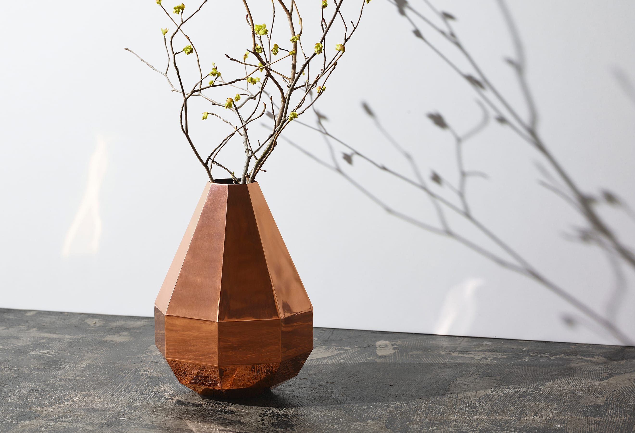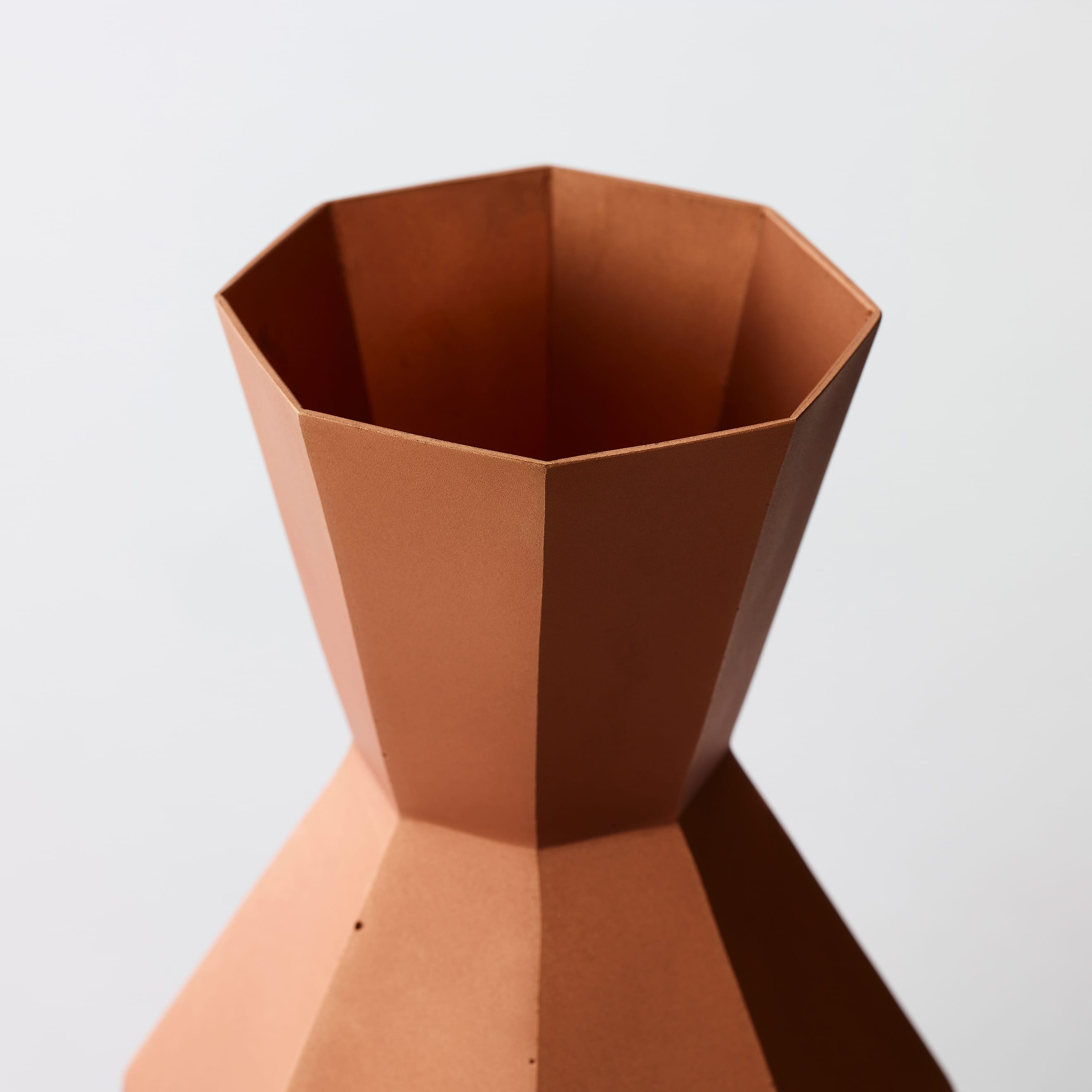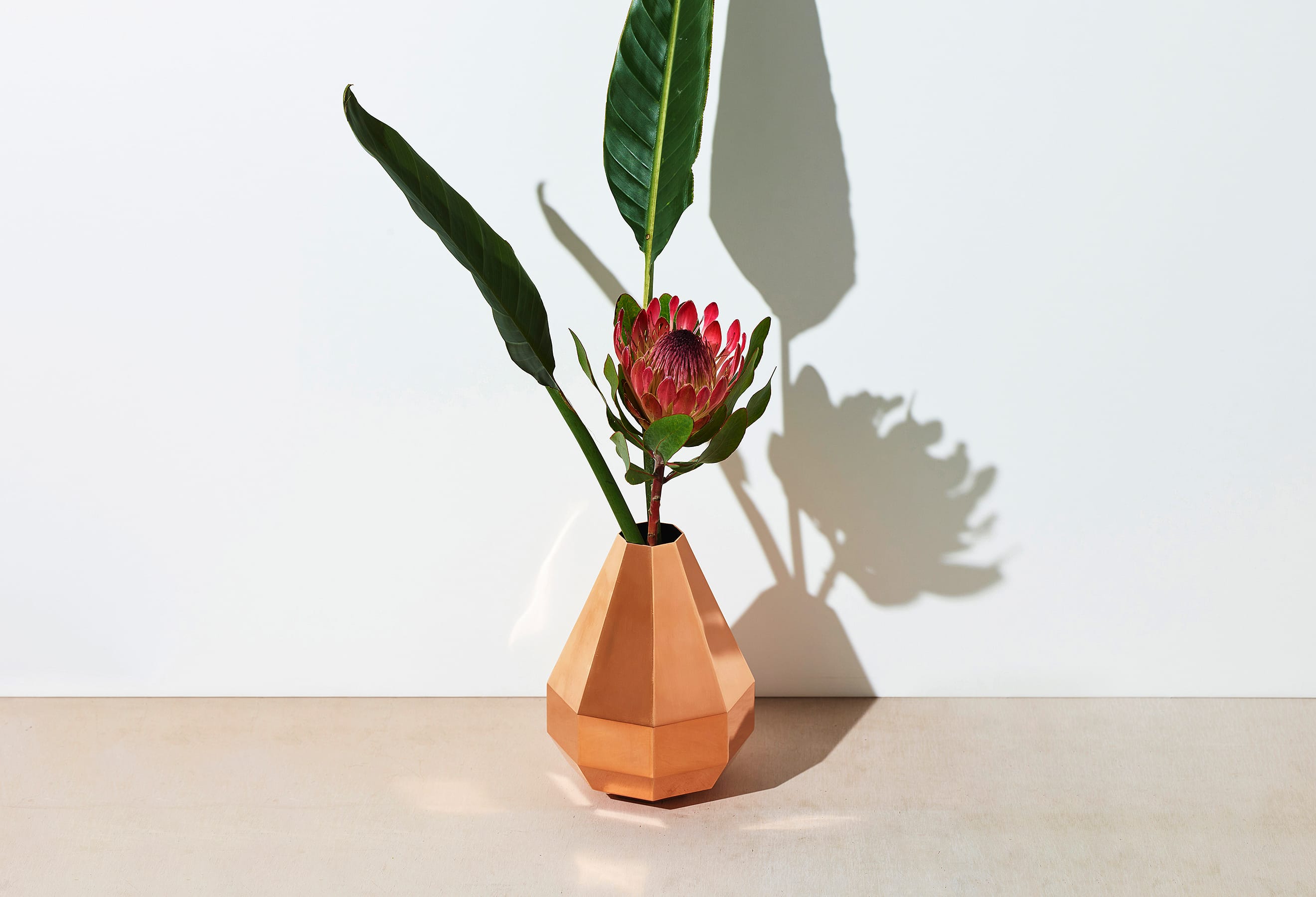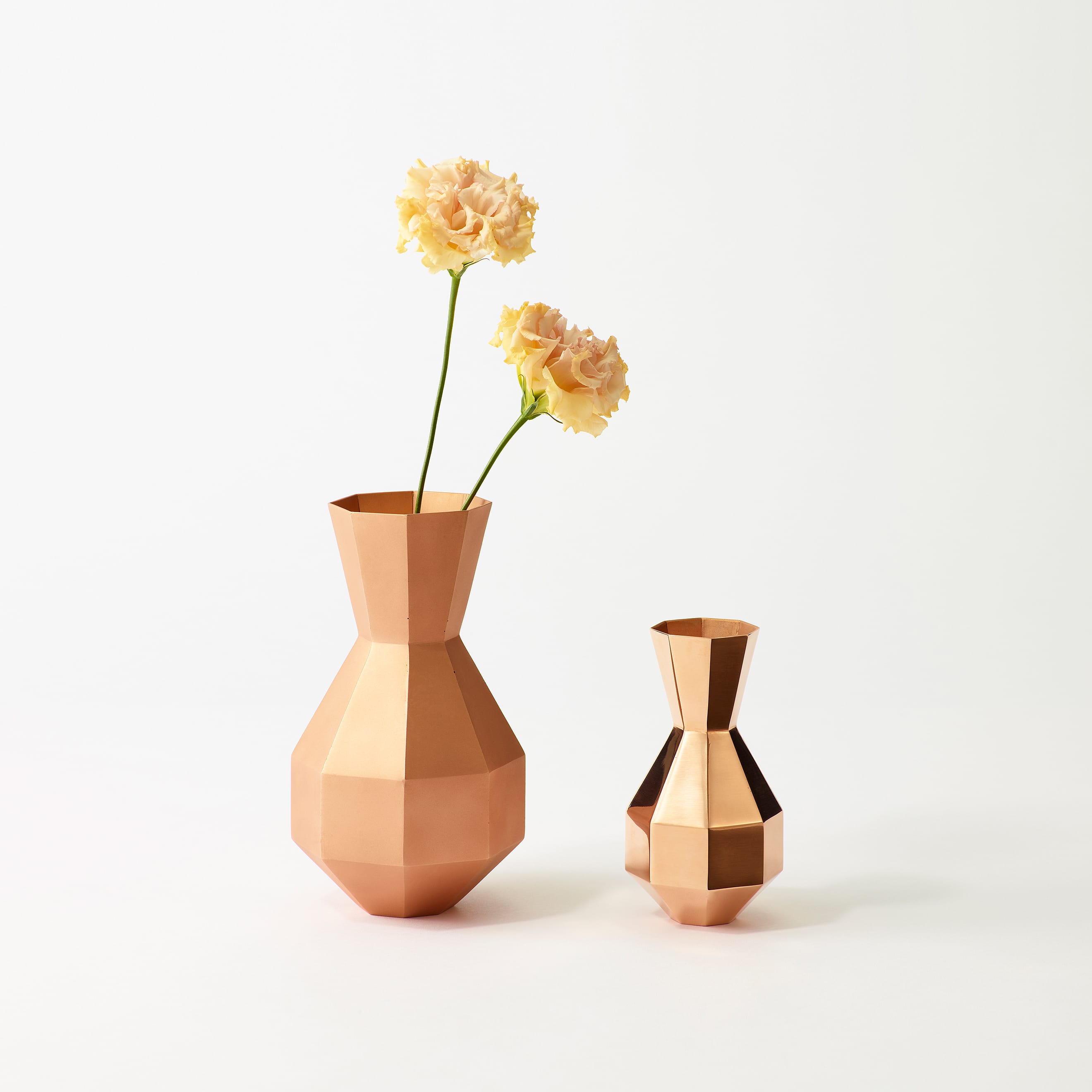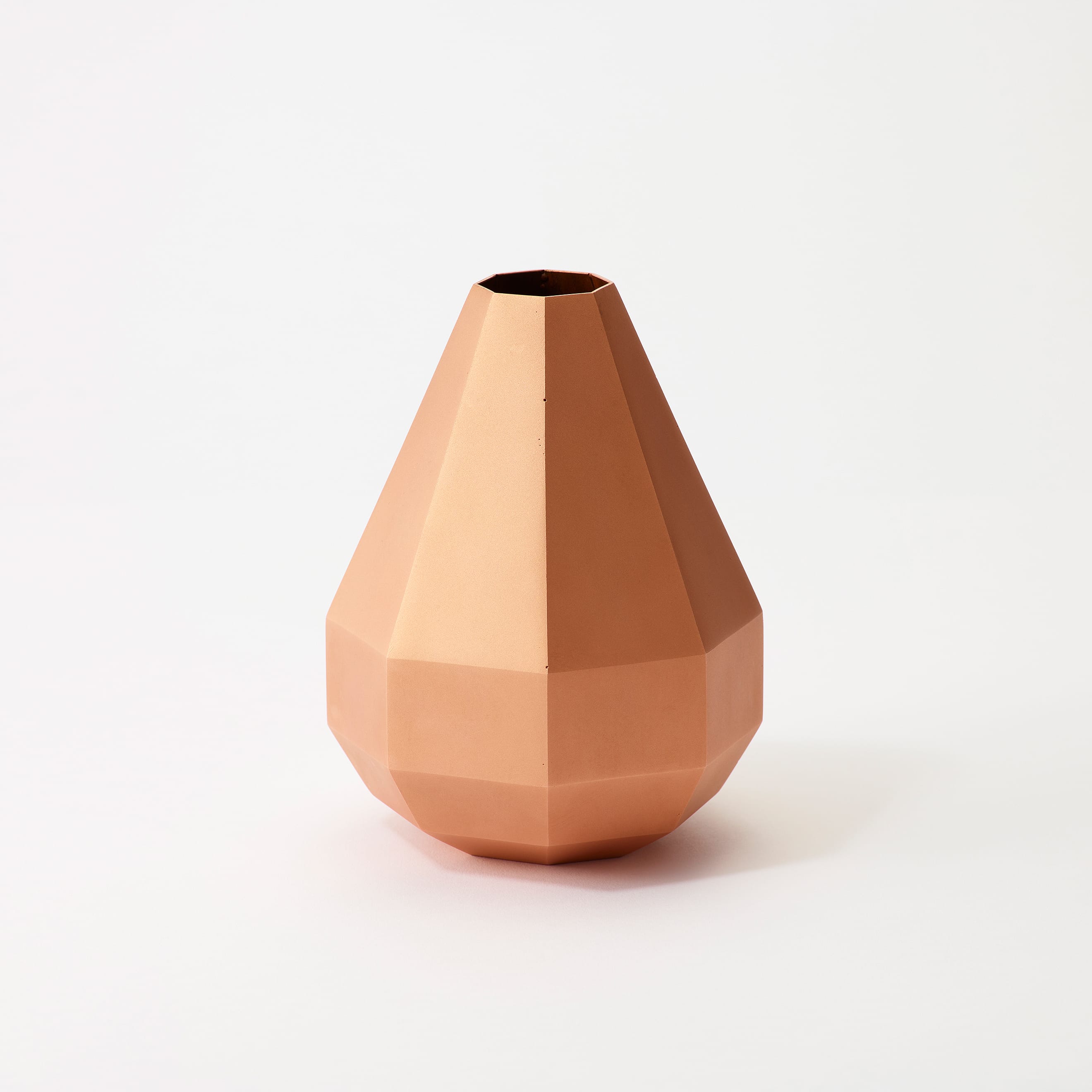 The Octagon Vase is a copper vase with an octagonal cross-section at every point along its beautiful form—but there is more to it than meets the eye. Copper is a material known for its antimicrobial properties; when it comes into contact with water, it releases copper ions which suppress the growth of bacteria and other microorganisms. This helps keep water clean and makes it easier for flowers to absorb nutrients, resulting in fresher, longer-lasting blooms. The octagon has also been seen as an auspicious symbol since ancient times, believed to draw positive energy from all eight sides while warding off negative forces and misfortune. While copper is a notoriously difficult material to weld and manipulate, the skilled hands of our artisans have achieved a beautifully precise object defined by its sharp lines and clean planes.
